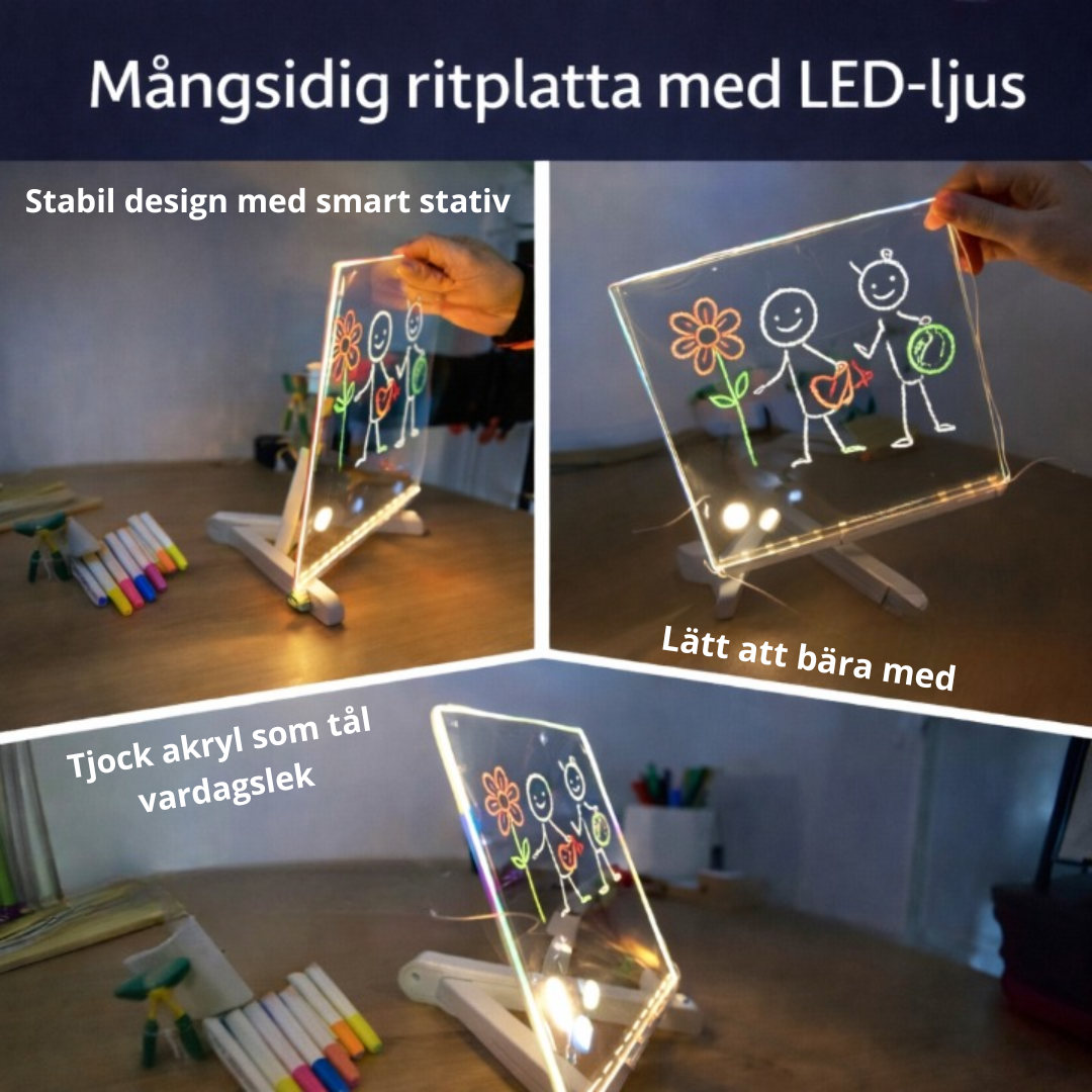 Vi använder Magiska RitTavlan nästan varje dag. Ljuset är mjukt, pennorna är jättebra och både barnen och jag fastnar lätt i ritandet. En lugn och kreativ stund vi verkligen uppskattar tillsammans.